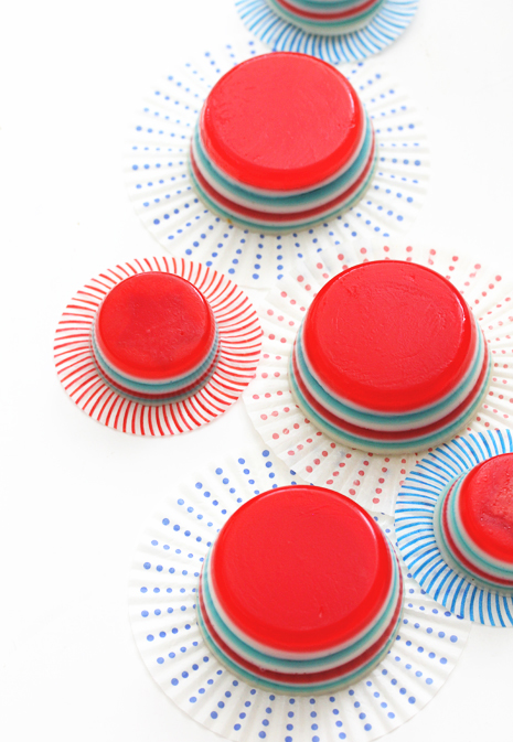 I recreated these with just red and white for Canada day in Canada… Man, 72 mini muffin-shaped jello shots is a LOT. Yours are super gorgeous, and because I think your instructions were worded the best they could be, I just linked back to you. Beautiful presentation, as usual.
